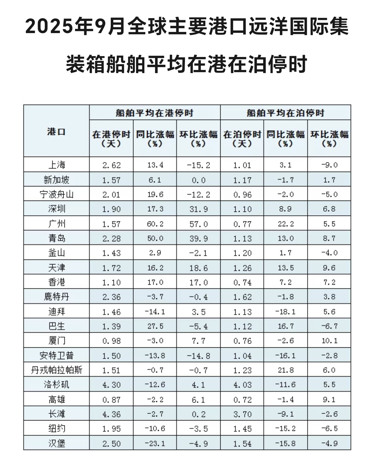 9月中国主要港口作业效率有所波动,欧美及沿线主要港口作业效率各有起伏。