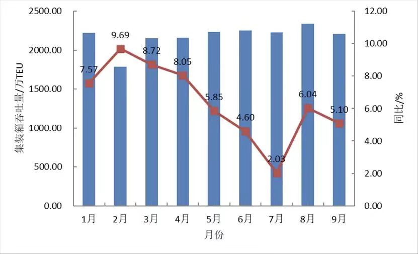 2025年前三季度,我国国民经济运行稳中有进,货物进出口实现平稳增长。9月,除煤炭吞吐量同比小幅下降外,主要港口企业原油、铁矿石、集装箱、粮食等吞吐量同比均实现不同程度增长。