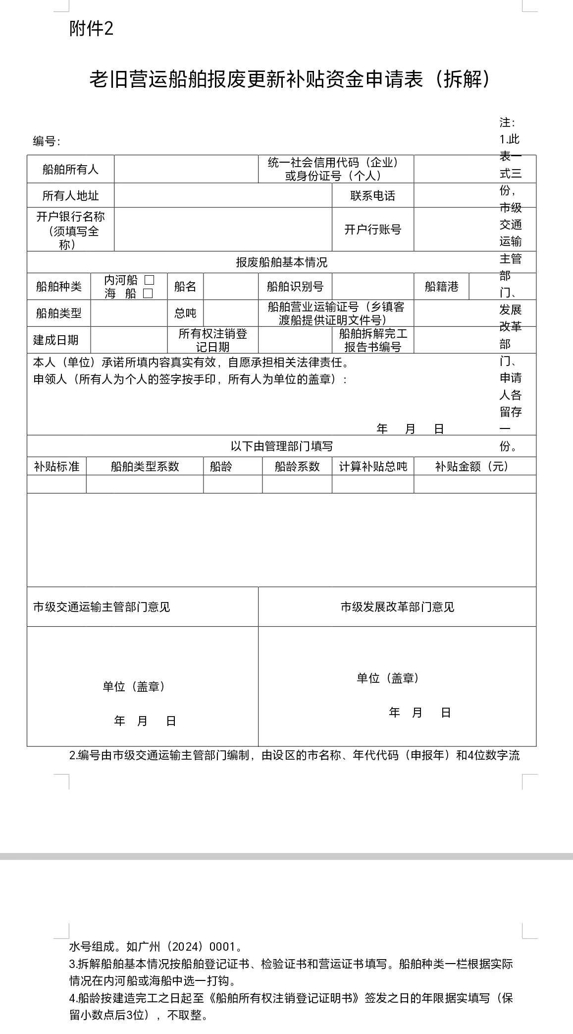 2. 附件2老旧营运船舶报废更新补贴资金申请表(拆解).docx