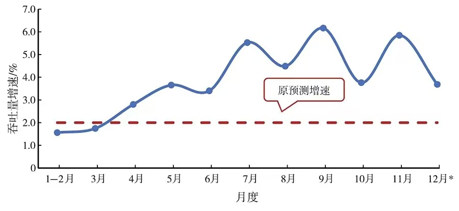 图4 2025年全国港口集装箱吞吐量月度增速变化
