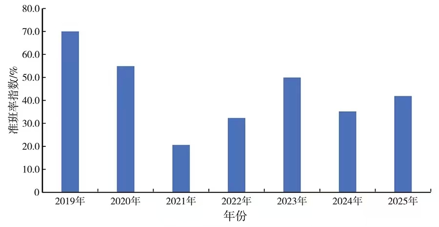 图8 全球主干航线综合准班率指数