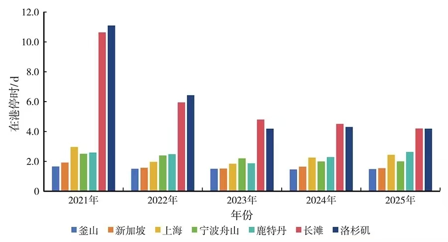 图9 全球典型集装箱港口在港平均停时变化